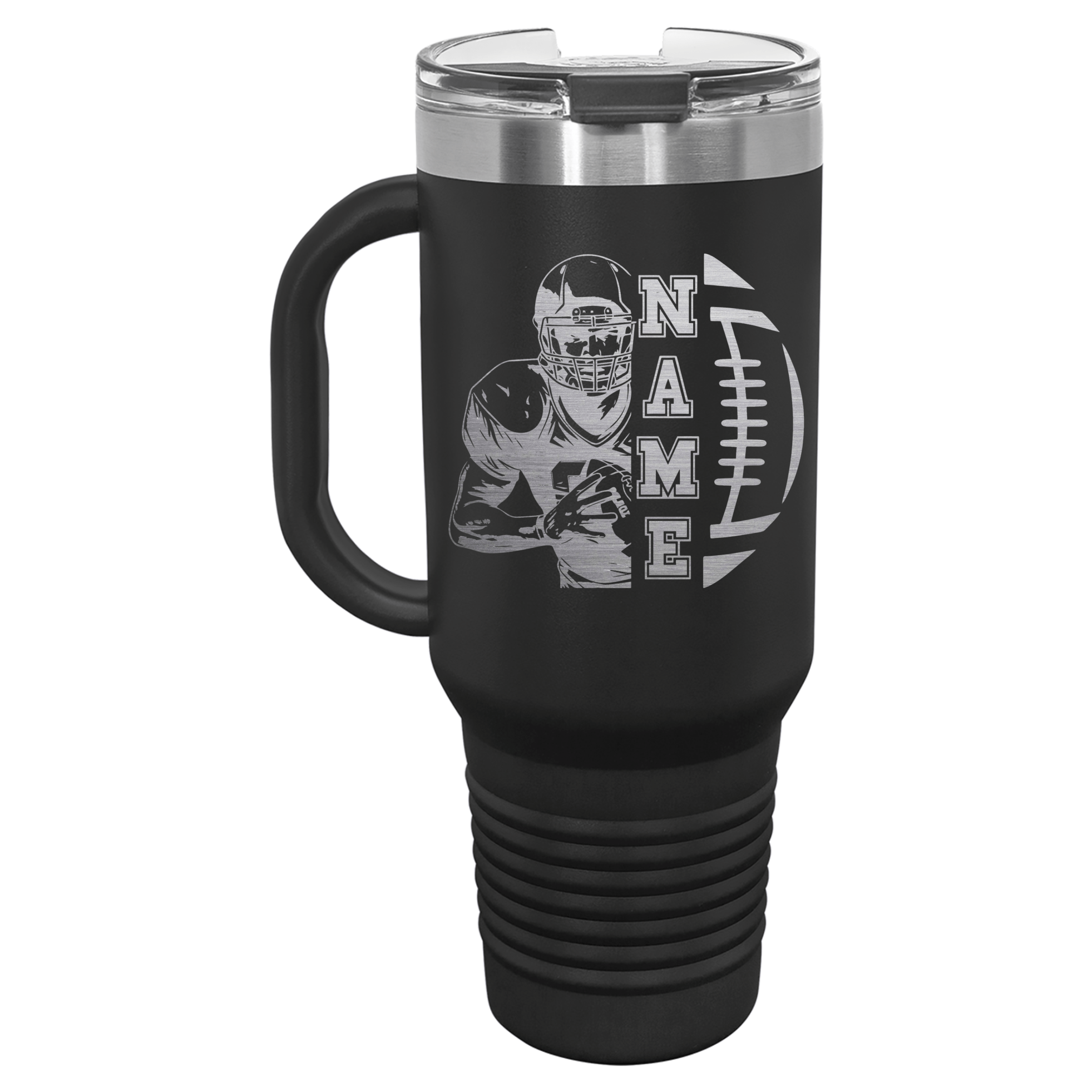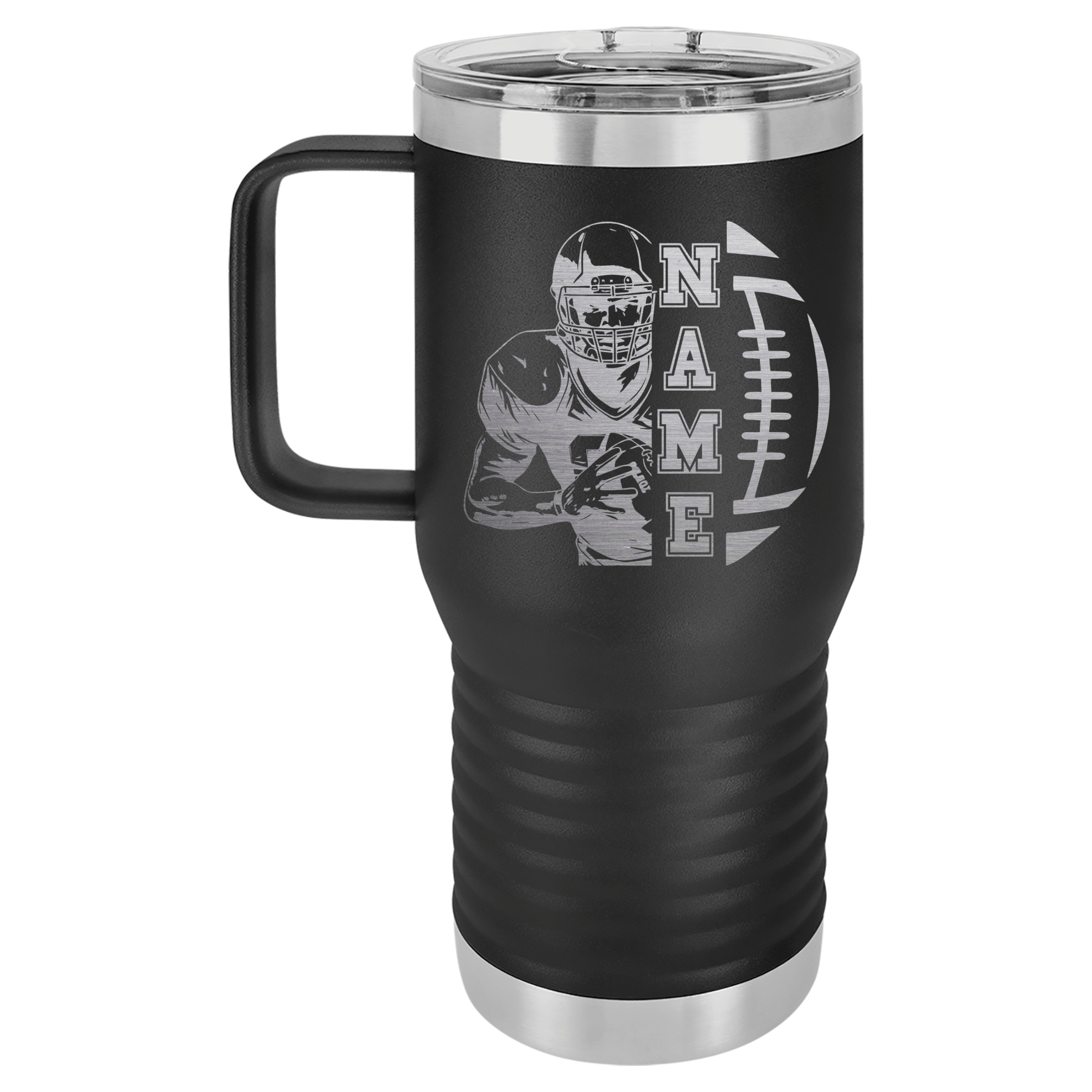 These 20oz or 40oz travel tumblers will fit in your cup holders in the car, and they are just like the tumblers you know and love already, but with a HANDLE!
