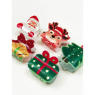 Small Santa & Christmas Hair Claw Clips for Girls – Mini acrylic clips with bright, clear prints that hold hair securely without snagging. Perfect for holiday styling or gifting.