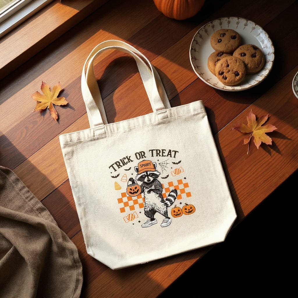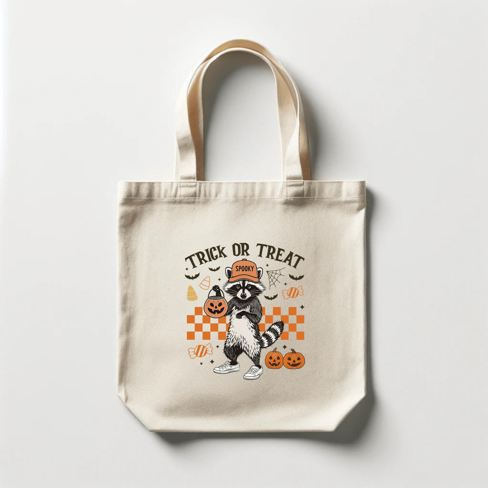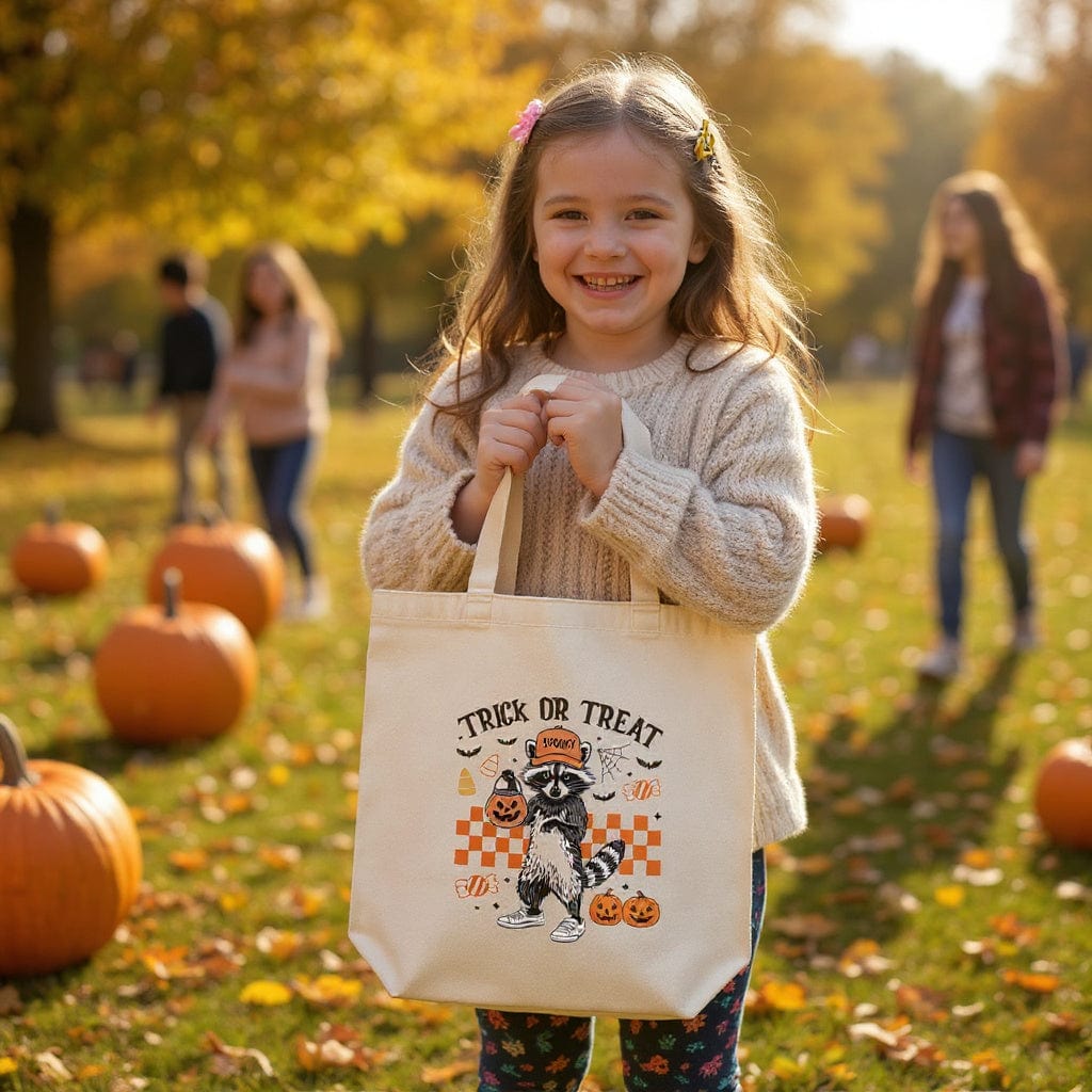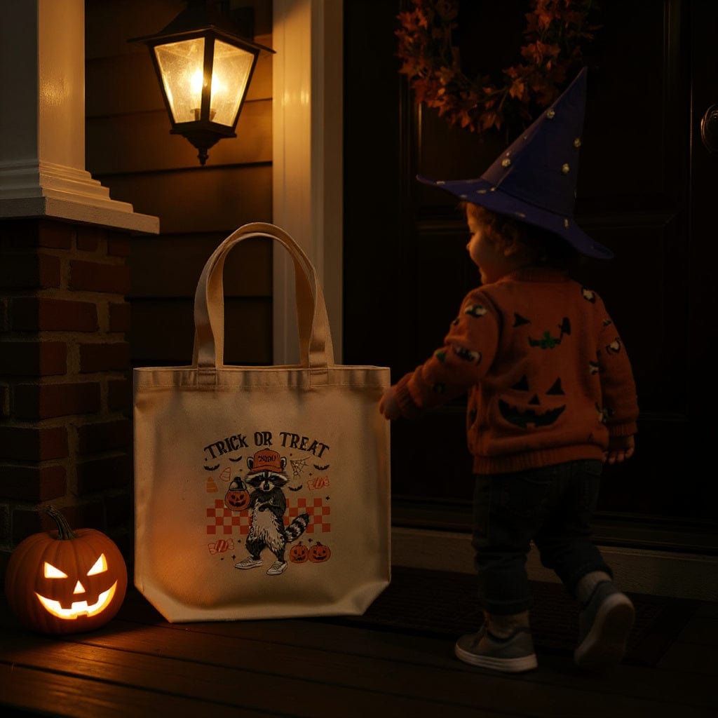 Our Trick or Treat Bags are made of 10oz recycled canvas material, roughly 15"x16" with a flat bottom. Reinforced at stress points. Because totes are made with recycled material and of fabric texture, color may differ slightly.