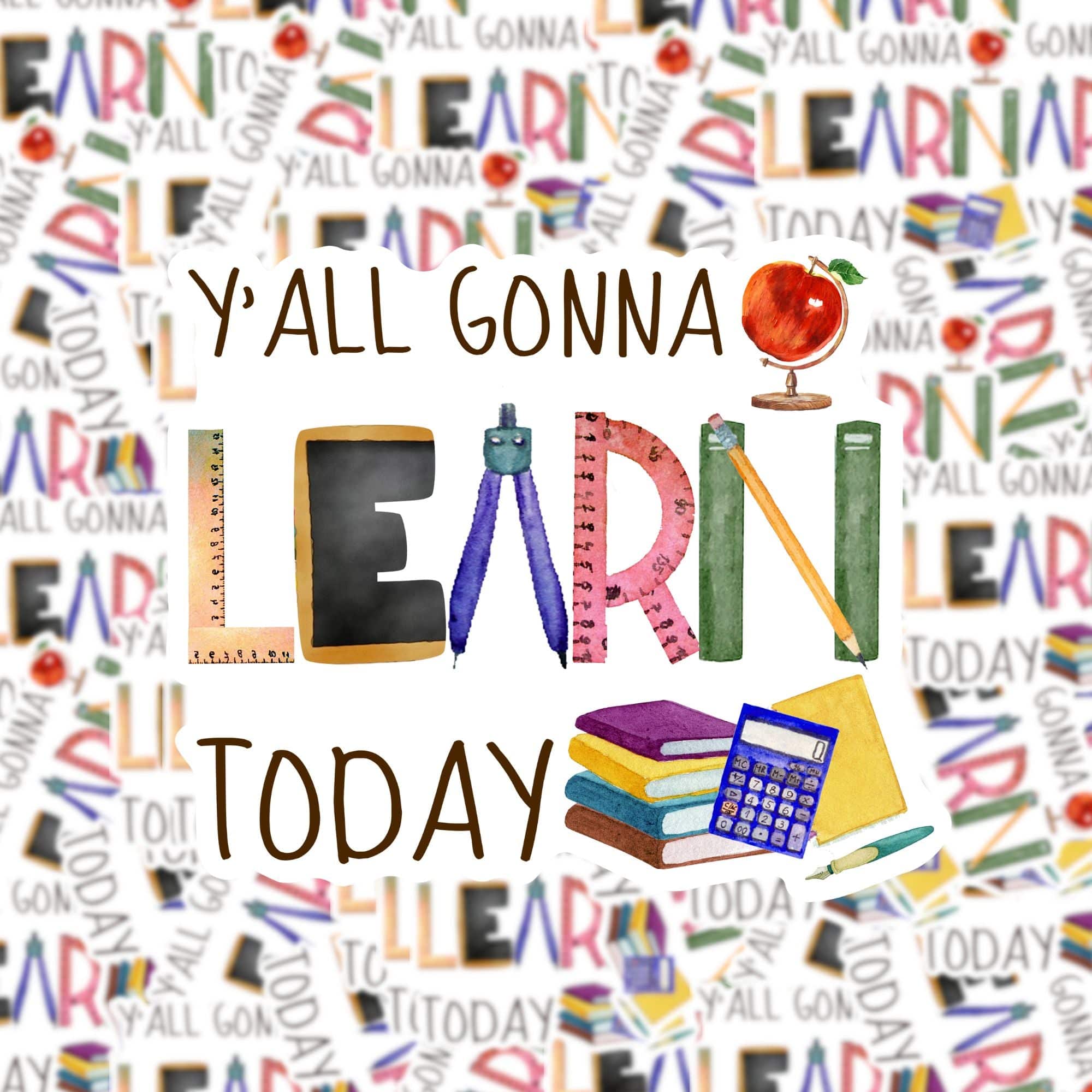 Teach and inspire with the Y'all Gonna Learn Today Teacher Sticker! Perfect for any educator, this playful sticker showcases your teaching powers and adds a touch of humor to any classroom. Spread knowledge and smiles with this unique and witty sticker.