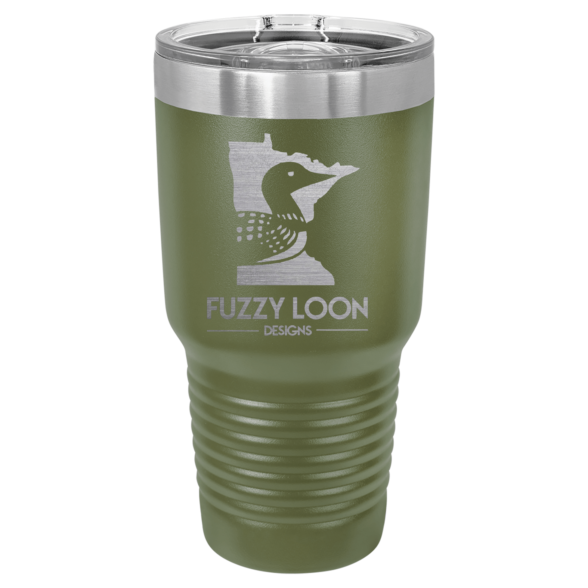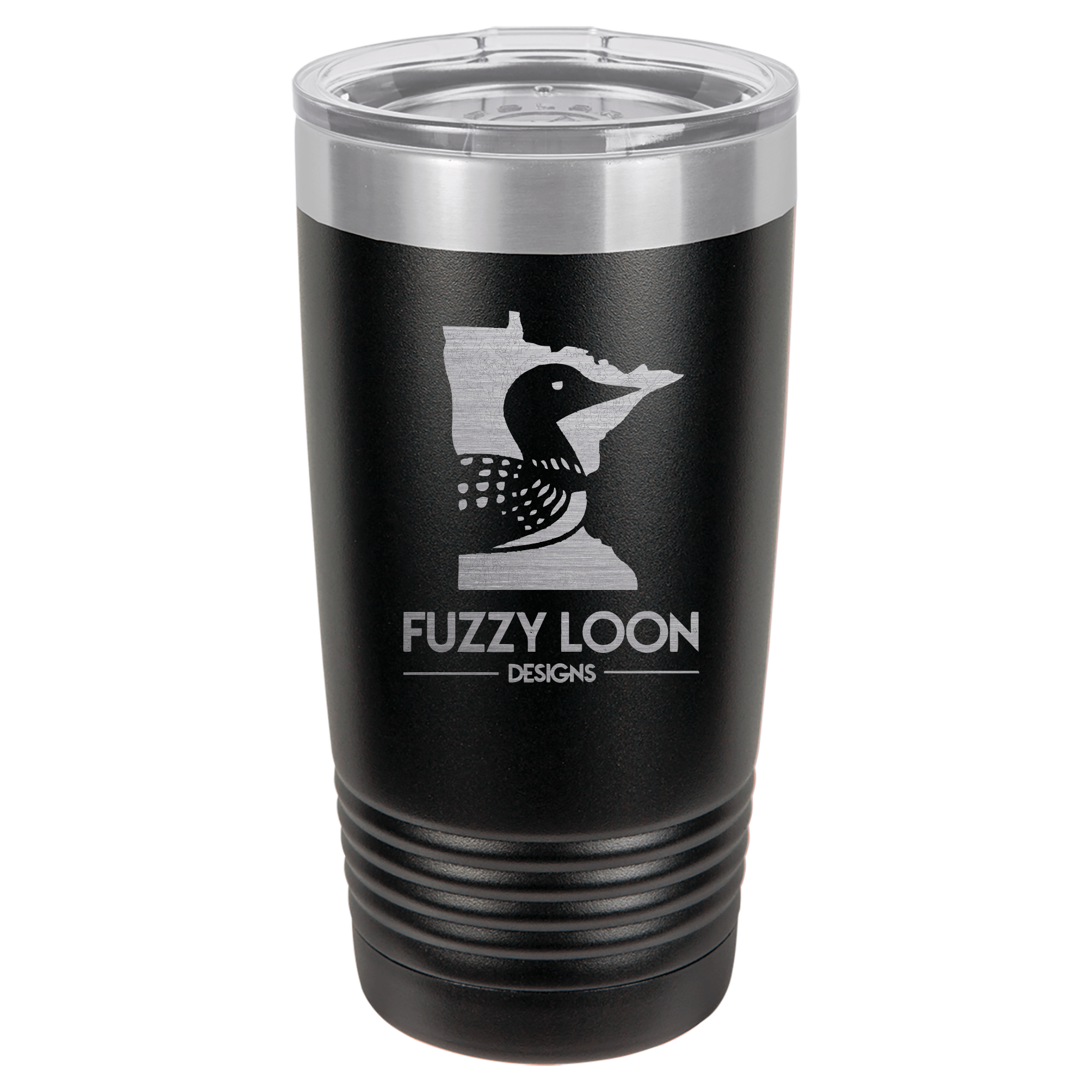 Please keep in mind for this style tumbler the design needs to be black and white. Anything that is black will be engraved. Grey scale or colored images does not engrave well. If you have questions, please email us first! (info@fuzzyloondesigns.com)